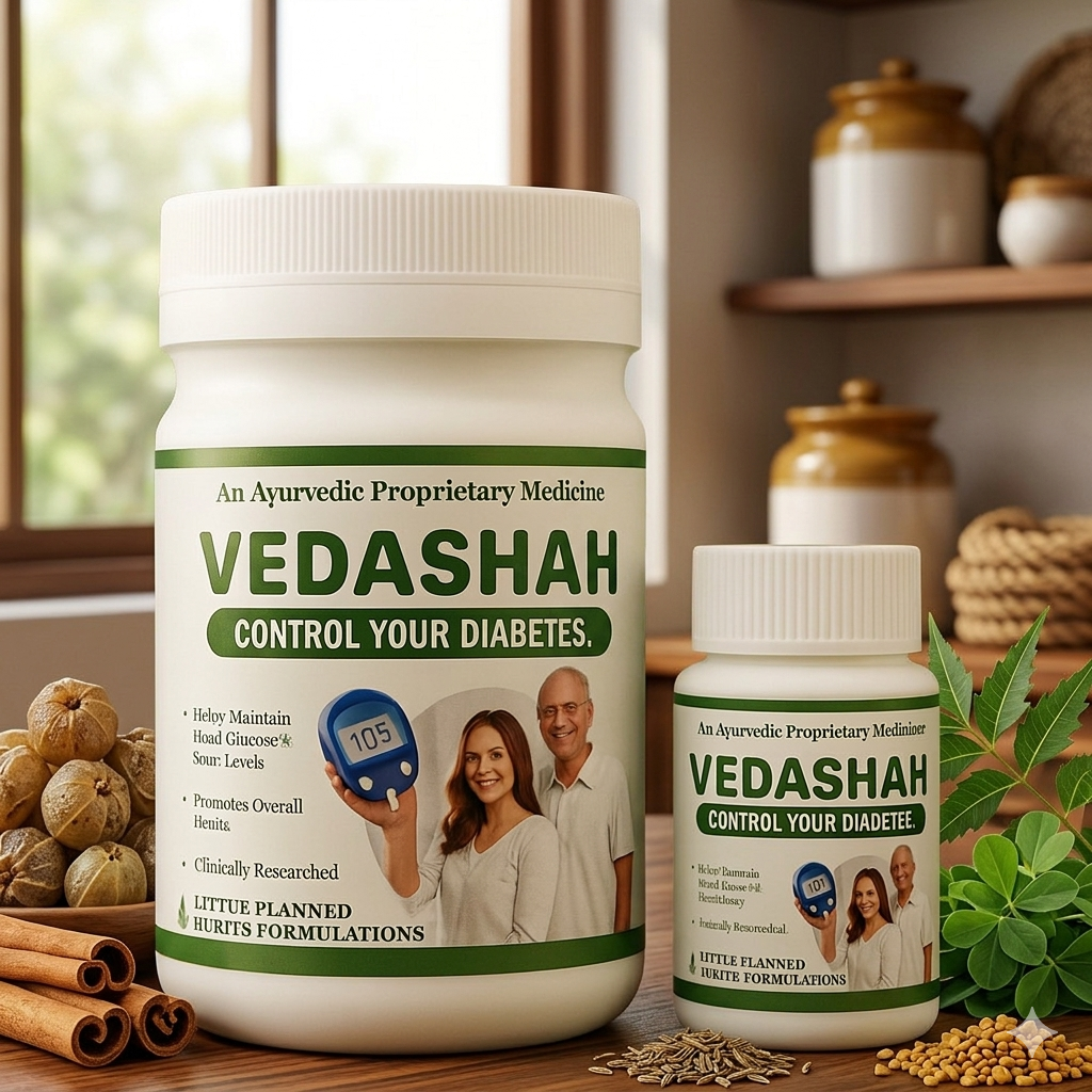 VedaShah Sugar Control Powder combines the ancient wisdom of Ayurveda with modern wellness needs. This unique formulation of 19 medicinal herbs helps the body regulate blood sugar levels, support pancreas health, and improve insulin function — without any side effects. Each ingredient in VedaShah has been carefully selected for its proven benefits in blood sugar management, digestion, liver health, and stamina improvement. It is a natural, non-addictive, and chemical-free solution for those who wish to balance their sugar levels the Ayurvedic way.